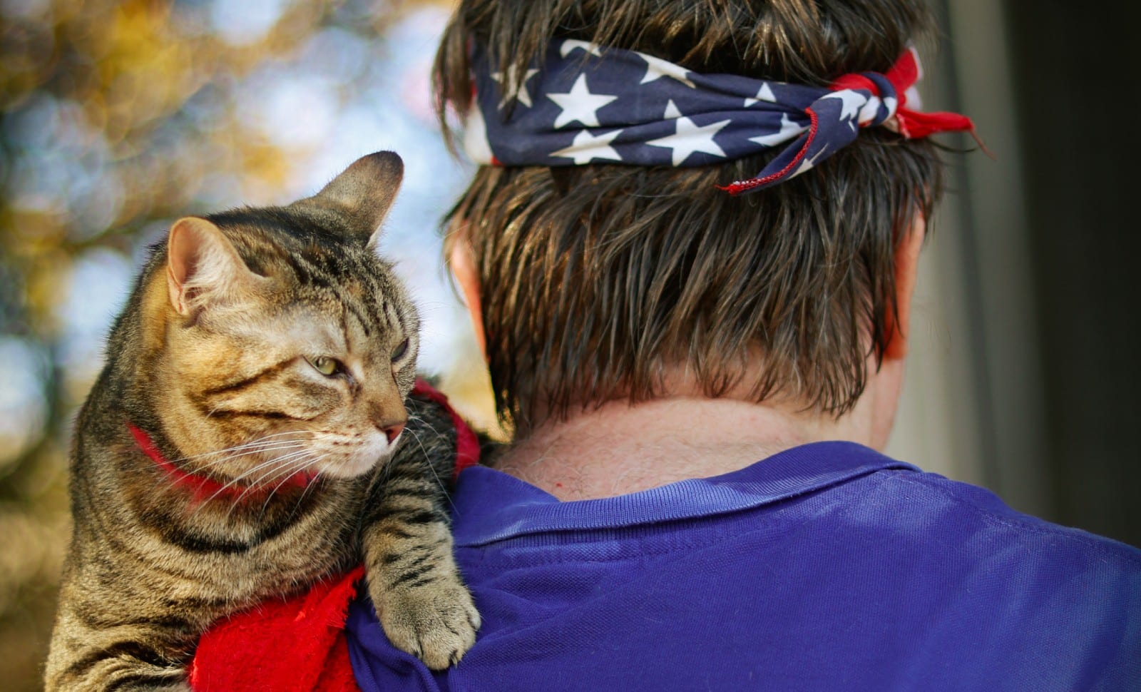 Erik Svane, blogueur, et le chat Jixie en renfort du trumpisme français, Paris, 19 septembre 2025 © Wilson T |